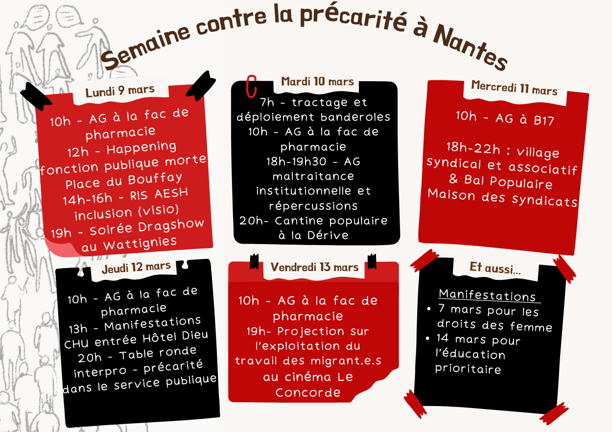 Aujourd’hui, la dégradation de nos conditions de travail s’accompagne d’un recours accru à la précarité. Qu’iels soient enseignant·es, CPE, AESH, AED, PsyEn, administratif.ves ou technicien.nes : les précaires toujours plus nombreux·ses dans le Service Public d’éducation. D’un côté, la macronie supprime des postes, de l’autre elle embauche plus de contractuel·les moins payé·es et avec moins de droits ! La loi prévoit de limiter la précarité, mais l’EN multiplie les temps partiels et la succession des contrats : il faut attendre 6 ans avant un CDI éventuel